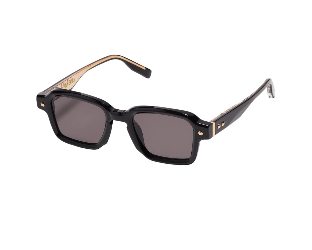 John Dalia P07 är en rektangulär båge med ett modernt och rent uttryck. Formen är tydlig men ändå lätt att bära, och passar dig som vill ha något som känns både stiligt och avslappnat. Den blanka svarta fronten i acetat ger modellen en fin och lyxig finish, medan gulddetaljerna vid gångjärnen ger bågen ett elegant lyft. Det är en diskret men tydlig detalj som gör stor skillnad när du väl sätter på dig bågen.